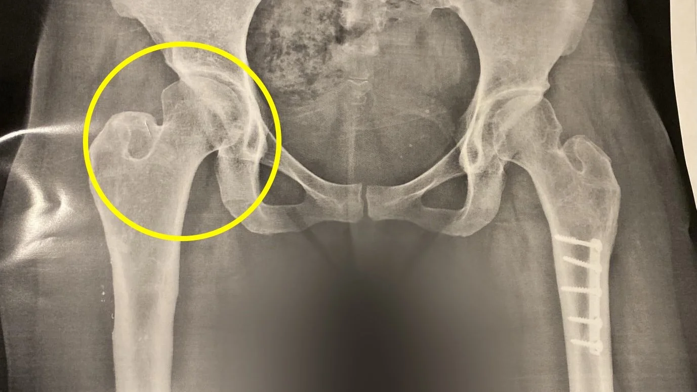 Tathiana was born with hip dysplasia and was undiagnosed until later childhood. She had two extensive surgeries when she was young, which involved long hospital stays far from home, leg traction, and full-body casts. She carried plates and screws in her legs for decades (in the picture, you can still see the hardware in her left leg), as well as a slight leg-length difference. After our daughter was born, she had another surgery to remove the hardware in her right leg to help with the inflammation and pain that resulted from her pregnancies.
